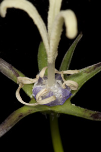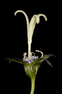 Le pistil est surmonté d'un seul style et de 3 stigmates très allongés, courbés vers l'extérieur.